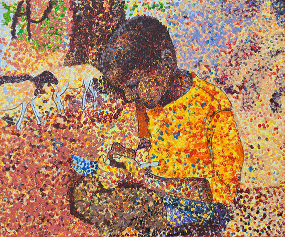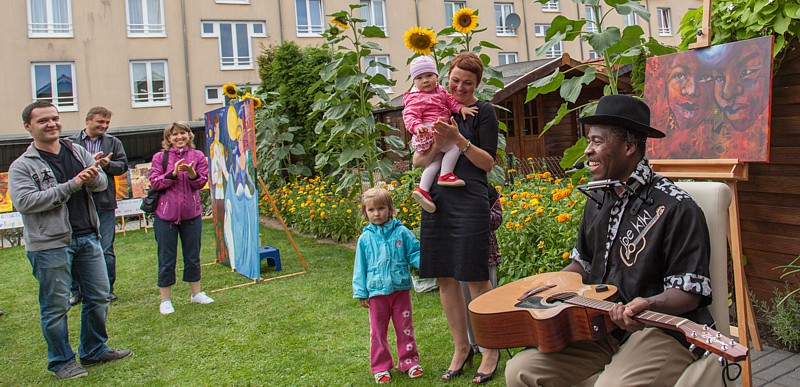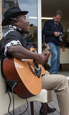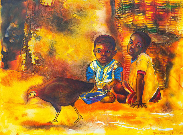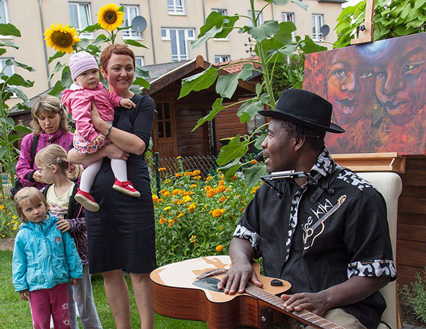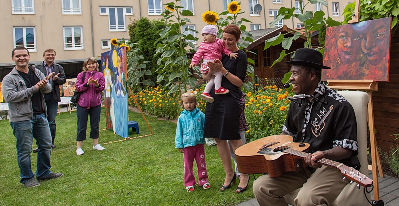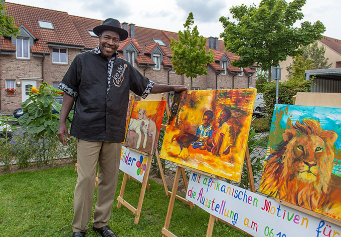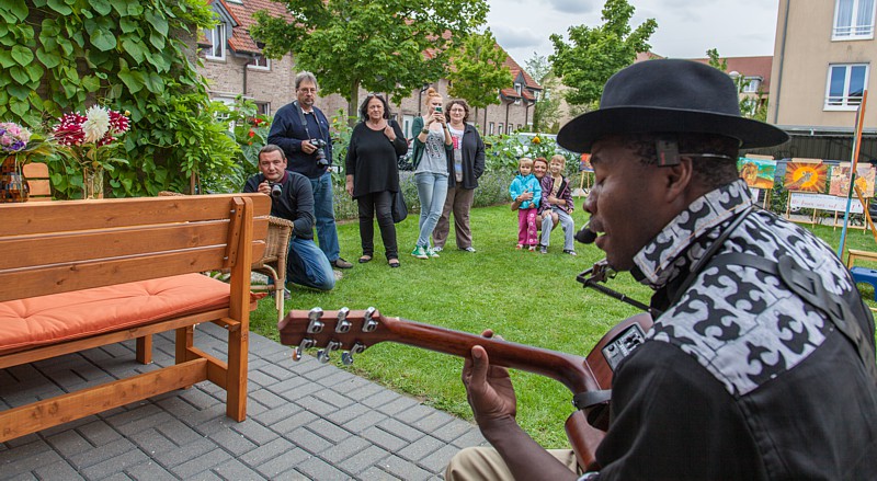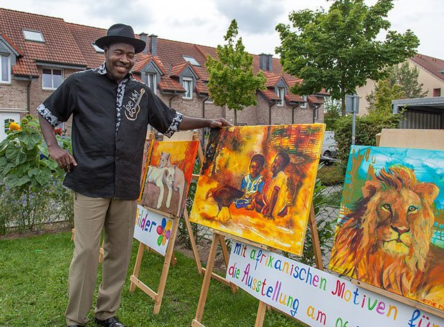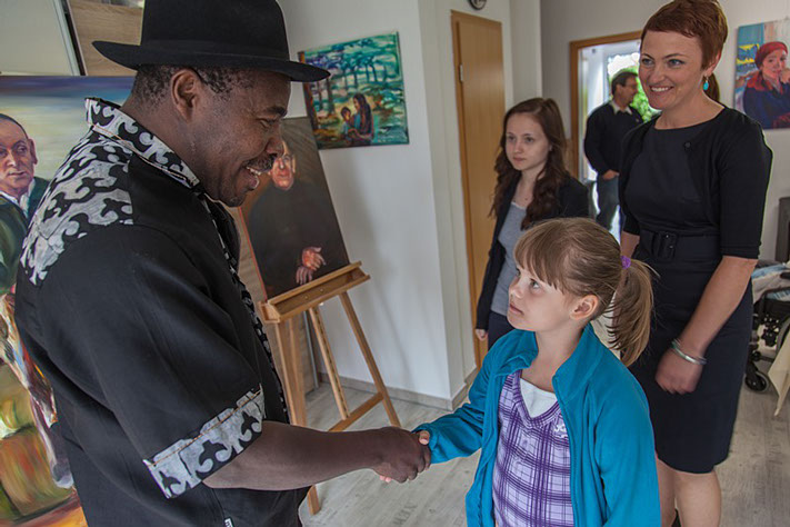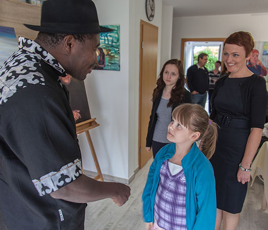 Besonders gefreut habe ich mich über den Besuch des Musikers Joe Kiki - die Gelegenheit, ihm die für den 6. Oktober 2013 von den Kindern gemalten Bilder zu zeigen.