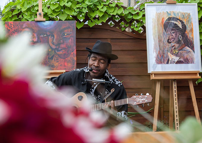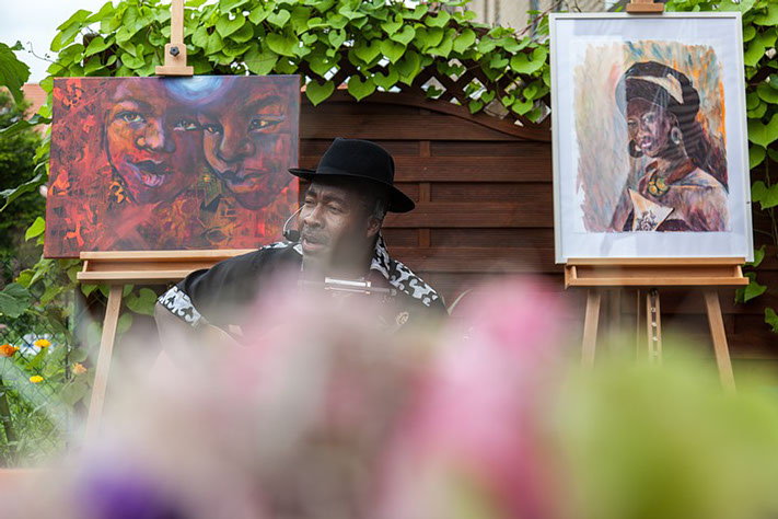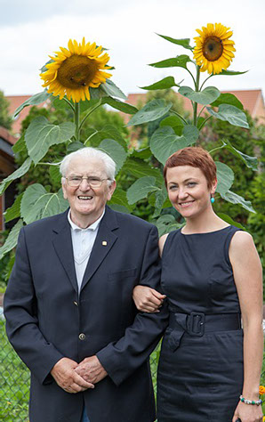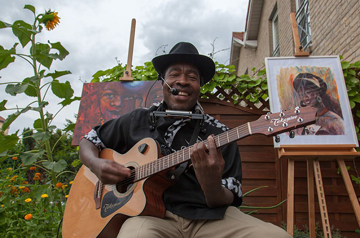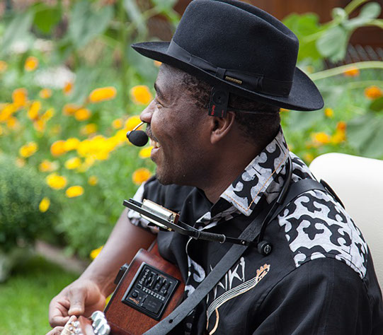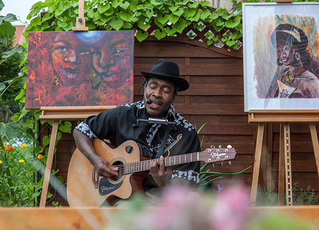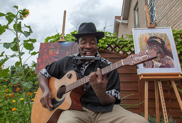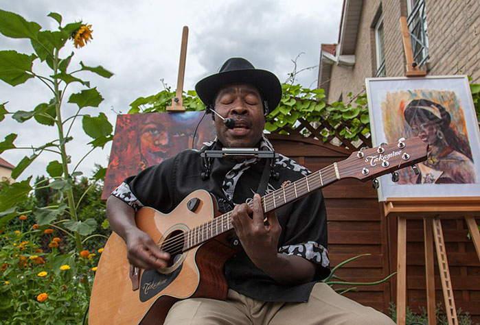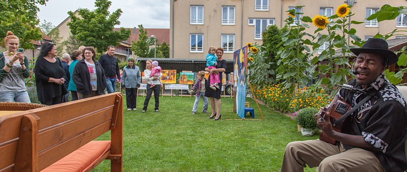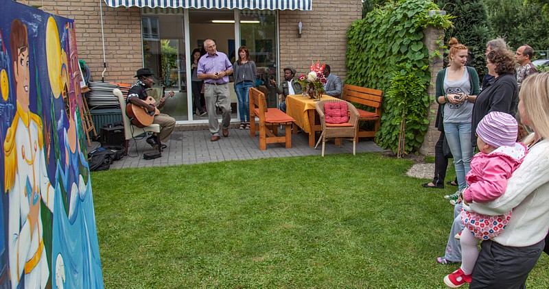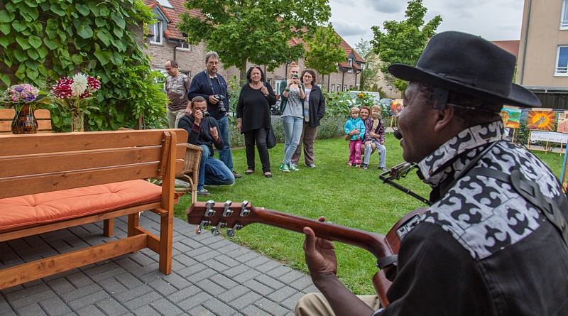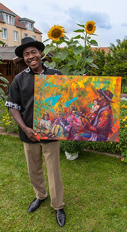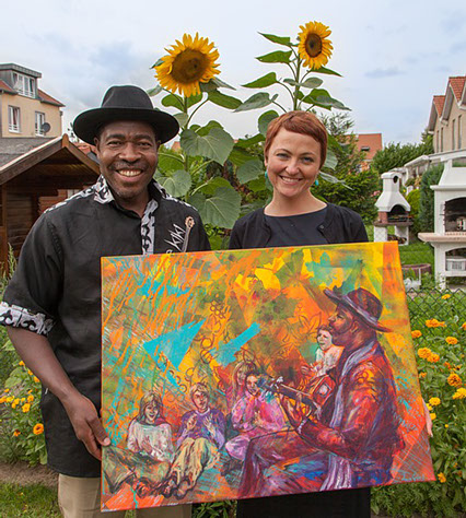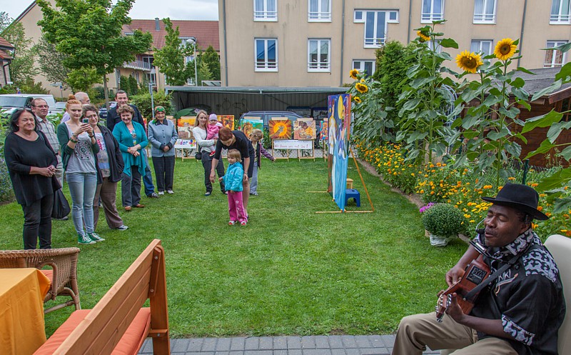 Als Dankeschön für sein Kommen überreichte ich ihm ein Portrait von ihm, auf dem er gemeinsam mit Kindern musiziert.