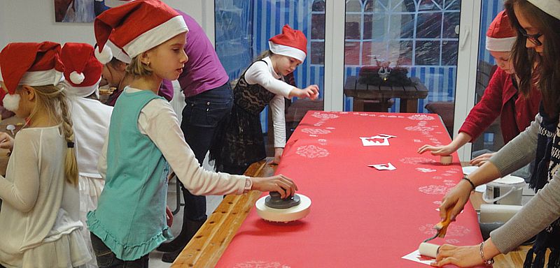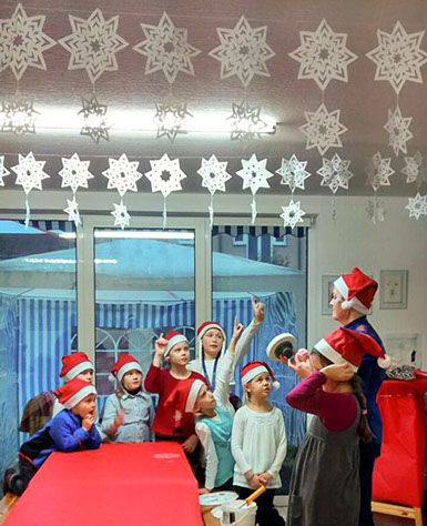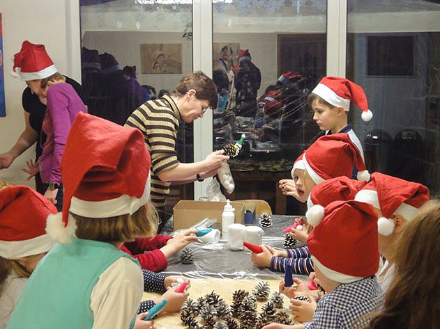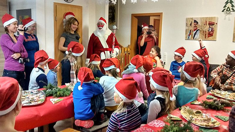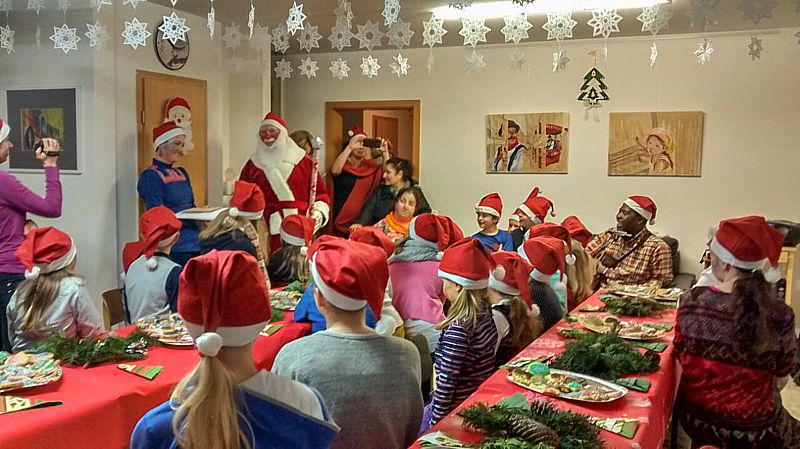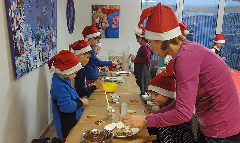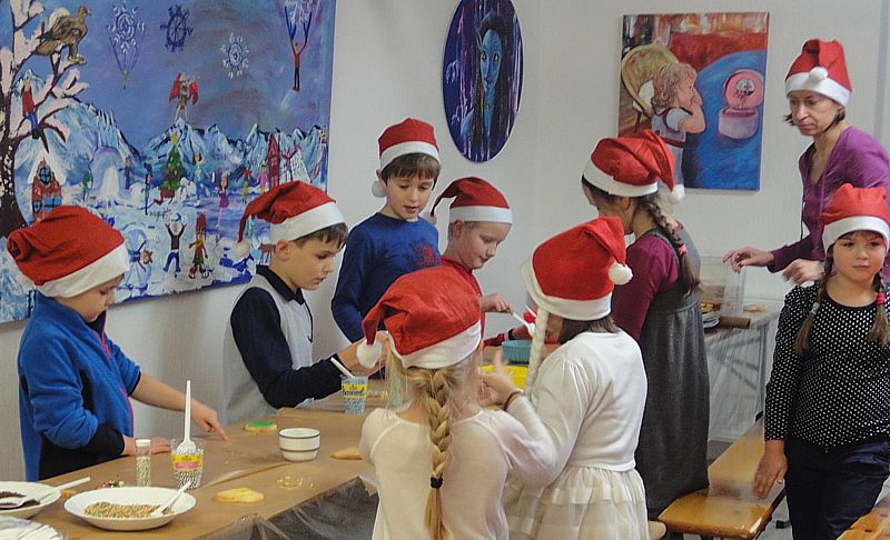 Plätzchen backen und verzieren, basteln und Weihnachtsdekoration herstellen - am 5. Dezember verwandelte sich unsere Mal- und Kunstschule in eine kleine Weihnachtswerkstatt. Neben dem Musiker Joe Kiki besuchte uns auch der Weihnachtsmann und verteilte großzügig seine Geschenke.