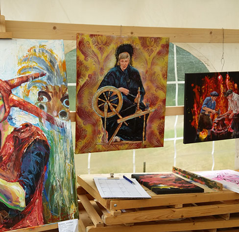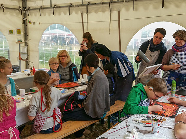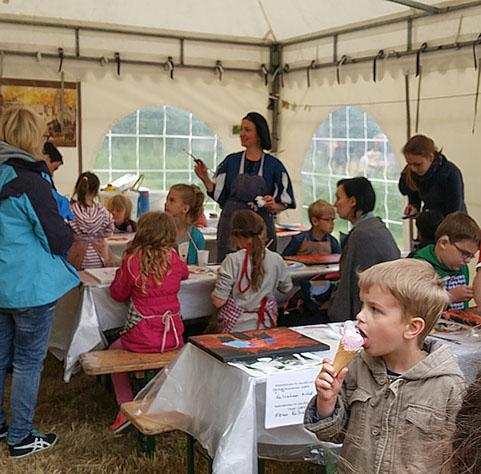 Zahlreiche Familien nutzten das verlängerte Pfingstwochenende, um auch in diesem Jahr den Flachsmarkt auf Burg Linn zu besuchen. Erstmalig waren auch wir mit unserer Mal- und Kunstschule vertreten, um in dieser einmaligen Umgebung verschiedene Maltechniken auszuprobieren und uns über die unterschiedlichsten und sehr spannenden Kunsthandwerke zu informieren.